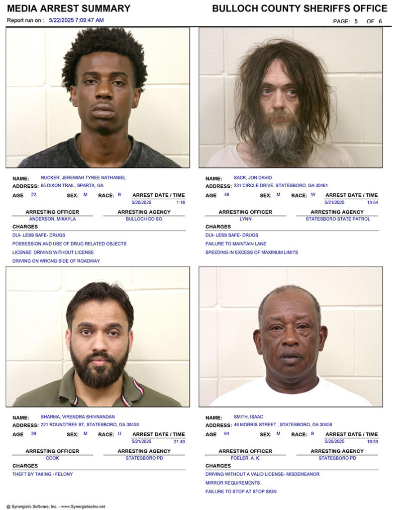 These records are matters of public information provided by the Bulloch County Sheriff’s Office. Booking reports are details of arrests only. All persons below are considered to be innocent unless proven otherwise in a court of law.