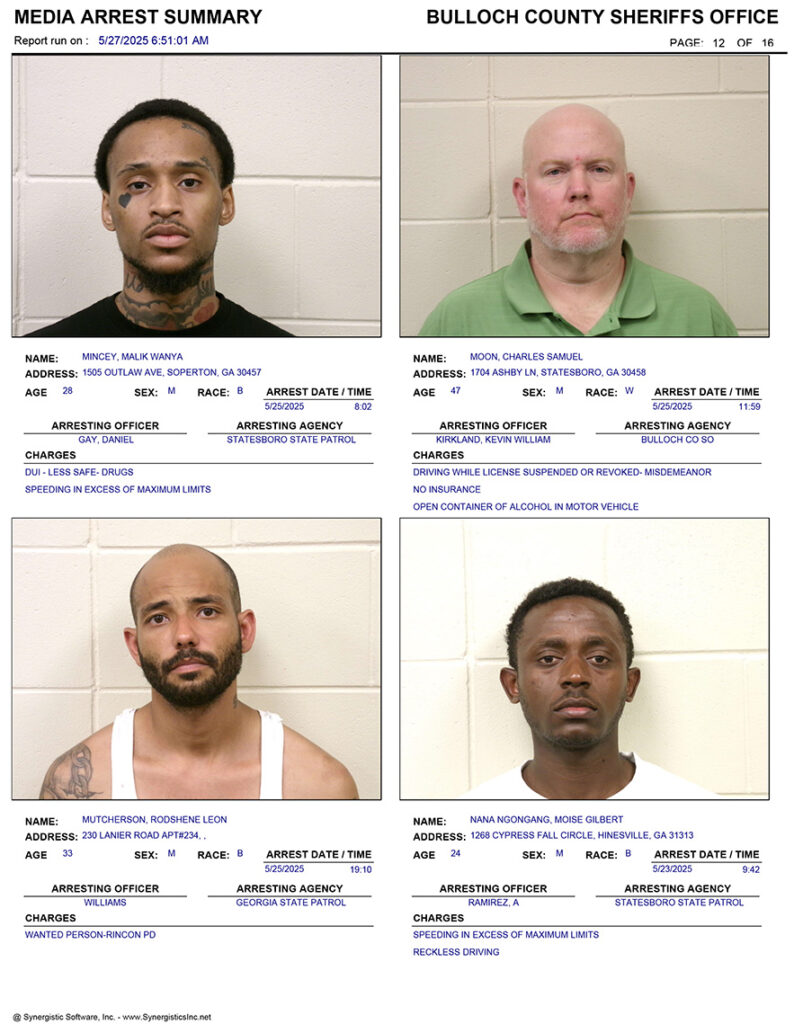 These records are matters of public information provided by the Bulloch County Sheriff’s Office. Booking reports are details of arrests only. All persons below are considered to be innocent unless proven otherwise in a court of law.
