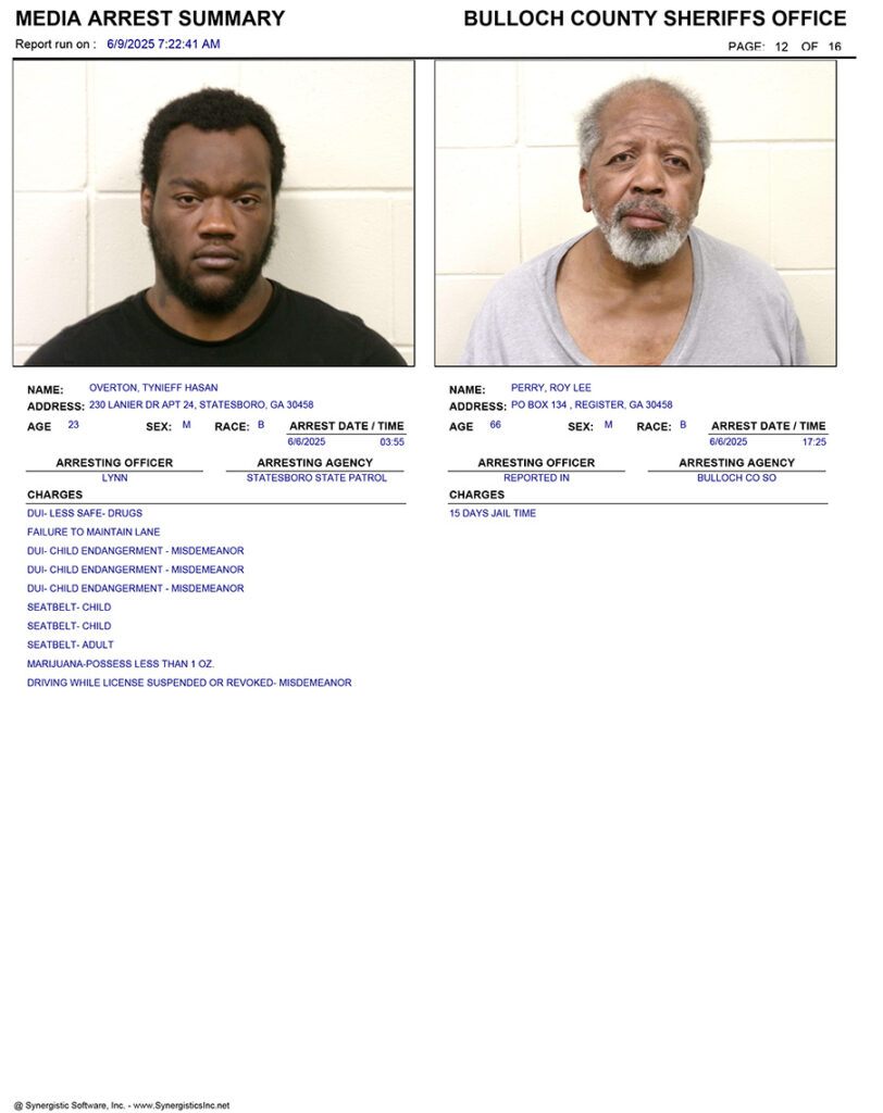 These records are matters of public information provided by the Bulloch County Sheriff’s Office. Booking reports are details of arrests only. All persons below are considered to be innocent unless proven otherwise in a court of law.