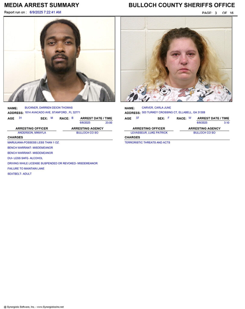 These records are matters of public information provided by the Bulloch County Sheriff’s Office. Booking reports are details of arrests only. All persons below are considered to be innocent unless proven otherwise in a court of law.