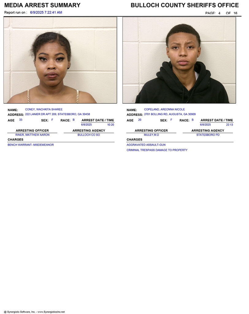 These records are matters of public information provided by the Bulloch County Sheriff’s Office. Booking reports are details of arrests only. All persons below are considered to be innocent unless proven otherwise in a court of law.