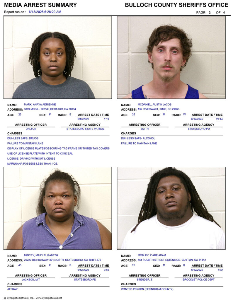 These records are matters of public information provided by the Bulloch County Sheriff’s Office. Booking reports are details of arrests only. All persons below are considered to be innocent unless proven otherwise in a court of law.