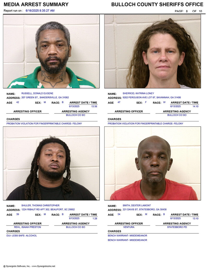 These records are matters of public information provided by the Bulloch County Sheriff’s Office. Booking reports are details of arrests only. All persons below are considered to be innocent unless proven otherwise in a court of law.
