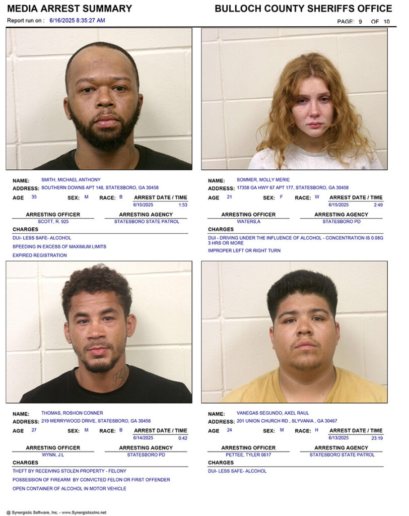 These records are matters of public information provided by the Bulloch County Sheriff’s Office. Booking reports are details of arrests only. All persons below are considered to be innocent unless proven otherwise in a court of law.