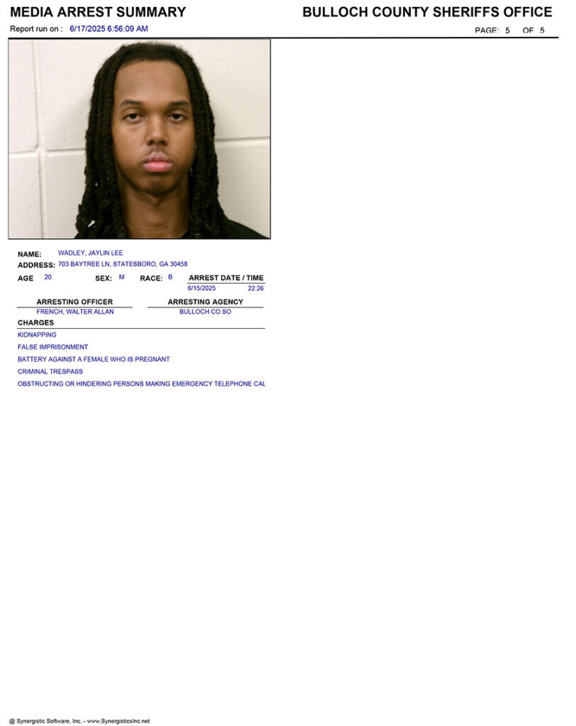 These records are matters of public information provided by the Bulloch County Sheriff’s Office. Booking reports are details of arrests only. All persons below are considered to be innocent unless proven otherwise in a court of law.