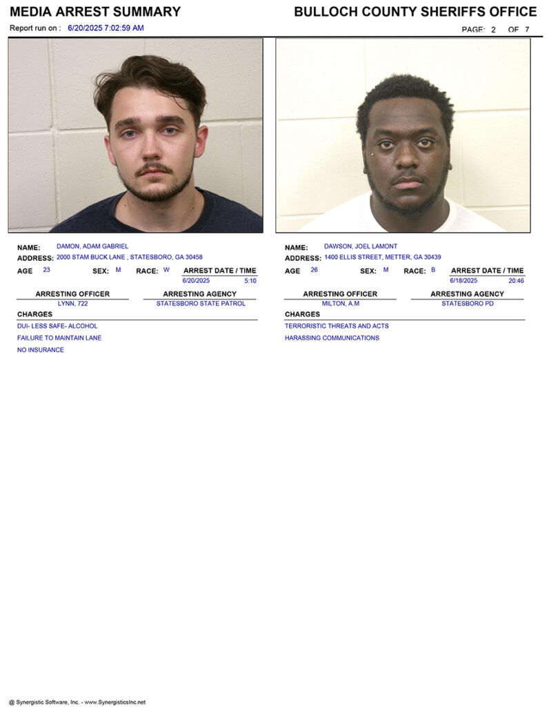 These records are matters of public information provided by the Bulloch County Sheriff’s Office. Booking reports are details of arrests only. All persons below are considered to be innocent unless proven otherwise in a court of law.