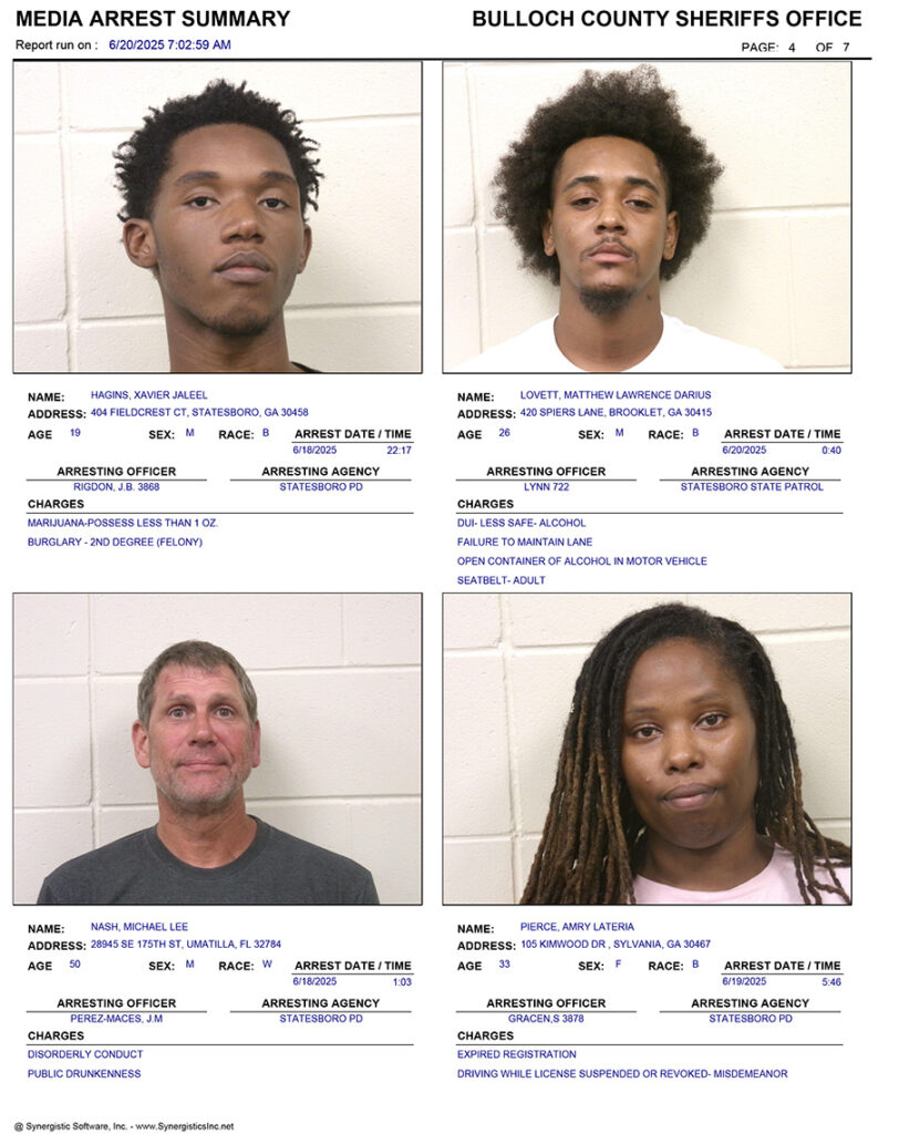 These records are matters of public information provided by the Bulloch County Sheriff’s Office. Booking reports are details of arrests only. All persons below are considered to be innocent unless proven otherwise in a court of law.