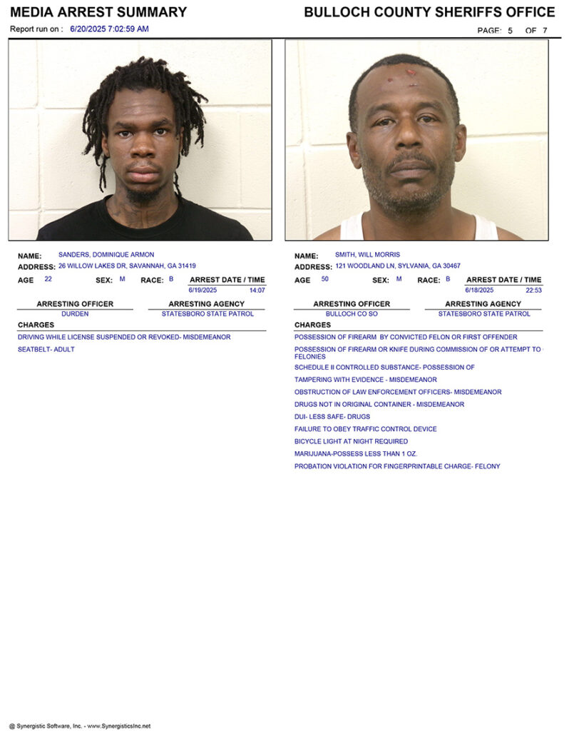 These records are matters of public information provided by the Bulloch County Sheriff’s Office. Booking reports are details of arrests only. All persons below are considered to be innocent unless proven otherwise in a court of law.