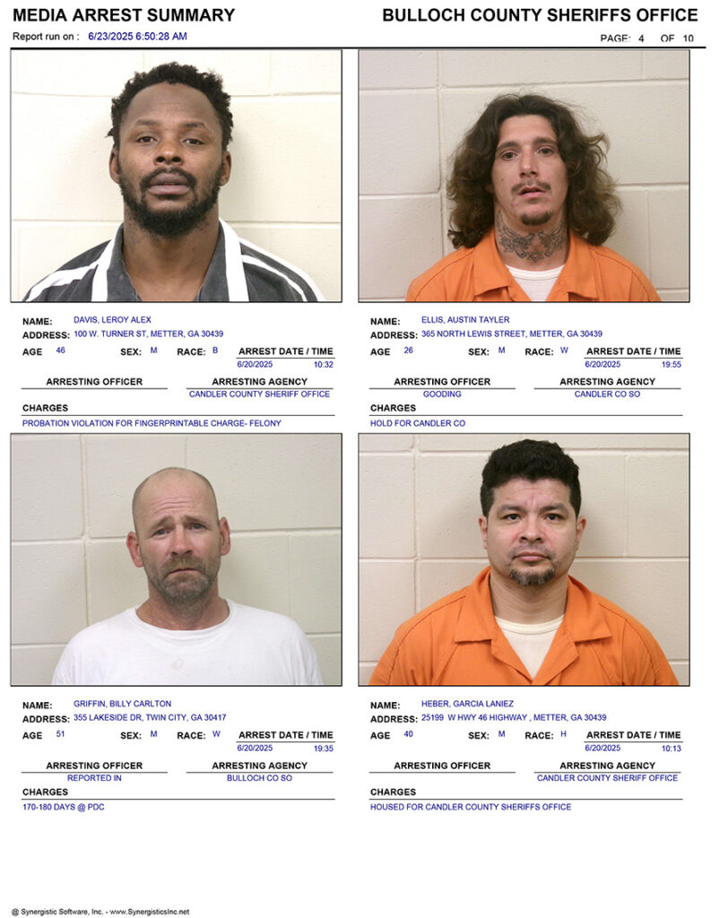 These records are matters of public information provided by the Bulloch County Sheriff’s Office. Booking reports are details of arrests only. All persons below are considered to be innocent unless proven otherwise in a court of law.