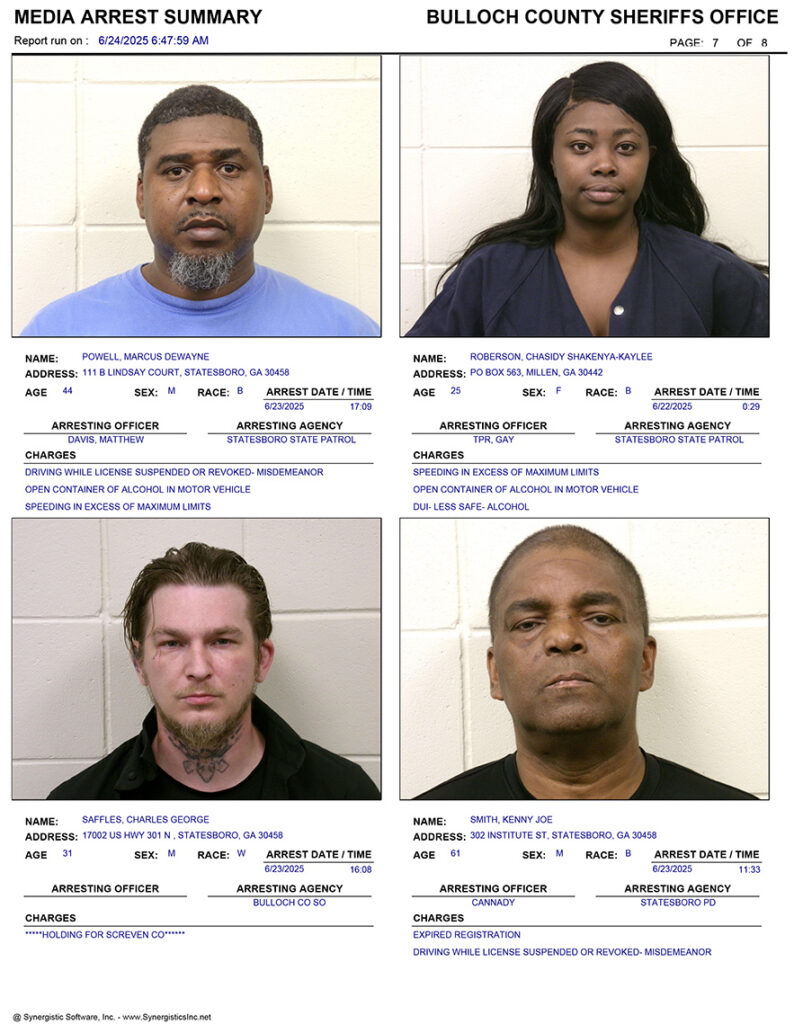 These records are matters of public information provided by the Bulloch County Sheriff’s Office. Booking reports are details of arrests only. All persons below are considered to be innocent unless proven otherwise in a court of law.