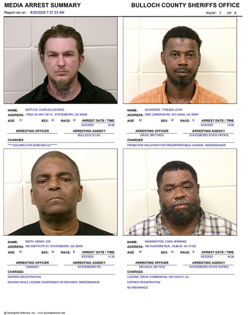These records are matters of public information provided by the Bulloch County Sheriff’s Office. Booking reports are details of arrests only. All persons below are considered to be innocent unless proven otherwise in a court of law.