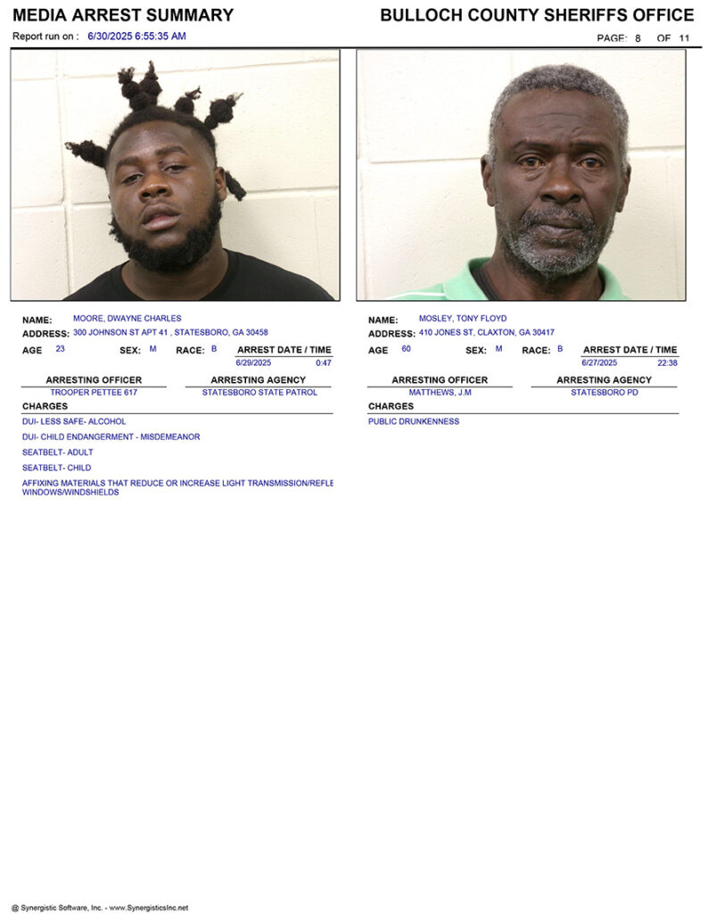 These records are matters of public information provided by the Bulloch County Sheriff’s Office. Booking reports are details of arrests only. All persons below are considered to be innocent unless proven otherwise in a court of law.