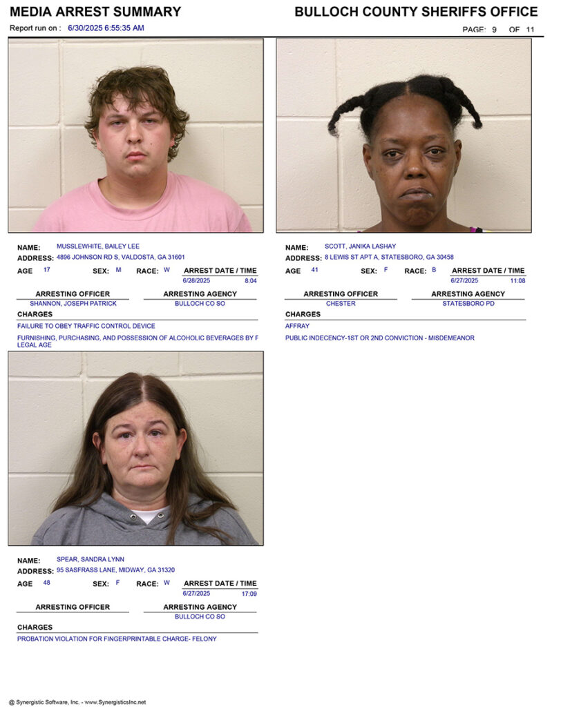 These records are matters of public information provided by the Bulloch County Sheriff’s Office. Booking reports are details of arrests only. All persons below are considered to be innocent unless proven otherwise in a court of law.