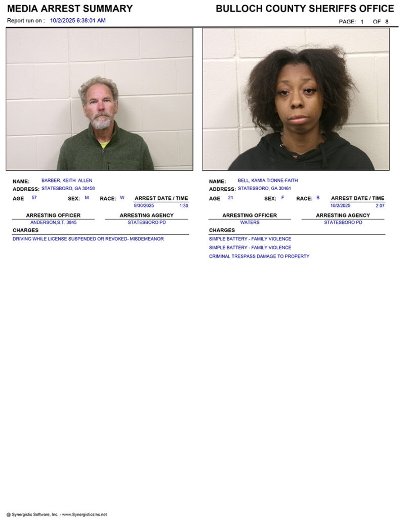 These records are matters of public information provided by the Bulloch County Sheriff’s Office. Booking reports are details of arrests only. All persons below are considered to be innocent unless proven otherwise in a court of law.
