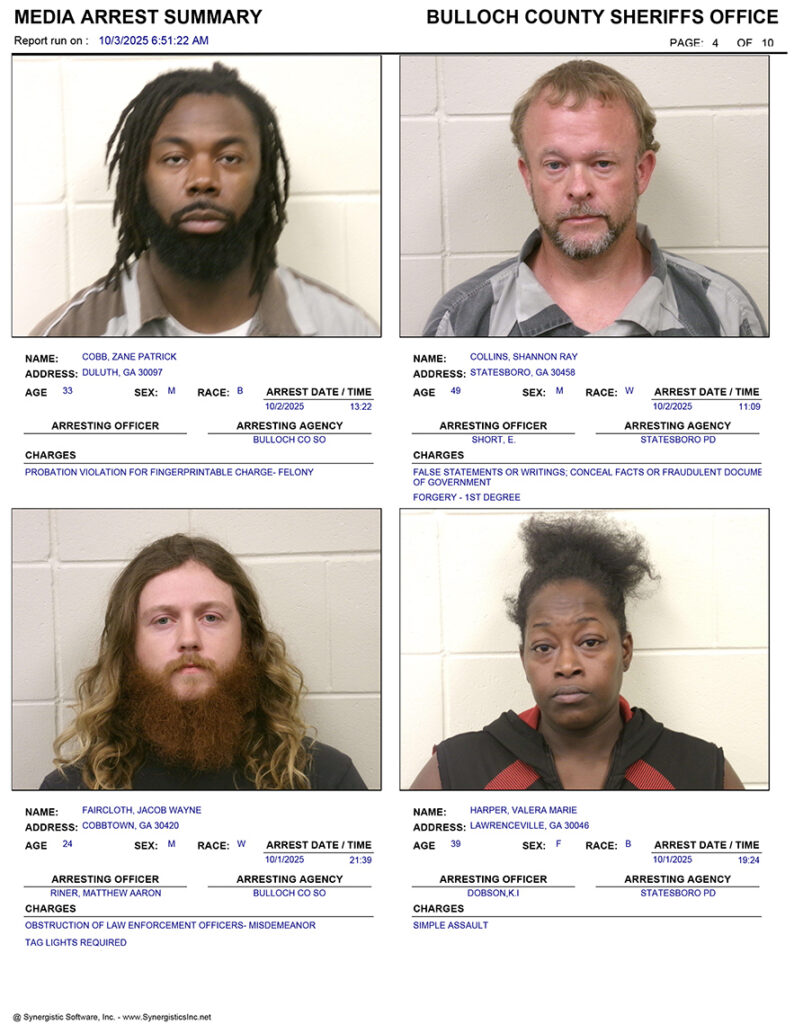 These records are matters of public information provided by the Bulloch County Sheriff’s Office. Booking reports are details of arrests only. All persons below are considered to be innocent unless proven otherwise in a court of law.