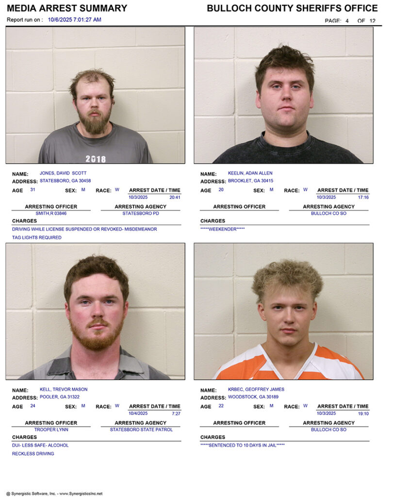 These records are matters of public information provided by the Bulloch County Sheriff’s Office. Booking reports are details of arrests only. All persons below are considered to be innocent unless proven otherwise in a court of law.
