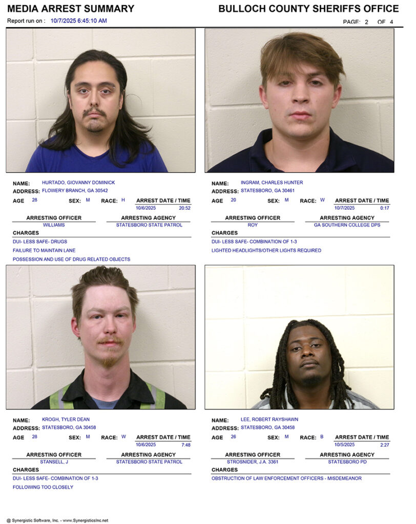 These records are matters of public information provided by the Bulloch County Sheriff’s Office. Booking reports are details of arrests only. All persons below are considered to be innocent unless proven otherwise in a court of law.