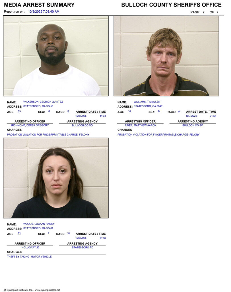 These records are matters of public information provided by the Bulloch County Sheriff’s Office. Booking reports are details of arrests only. All persons below are considered to be innocent unless proven otherwise in a court of law.
