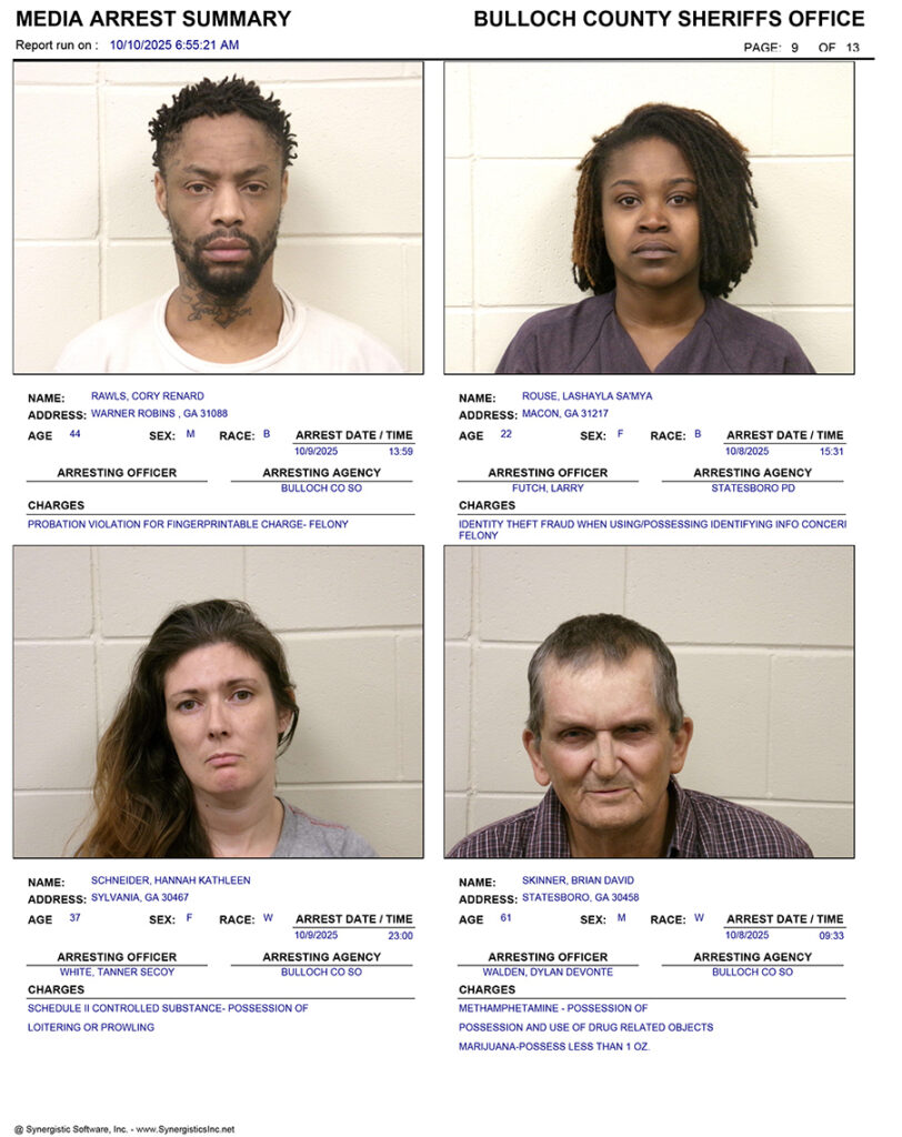 10/10/2025 Booking Report for Bulloch County
