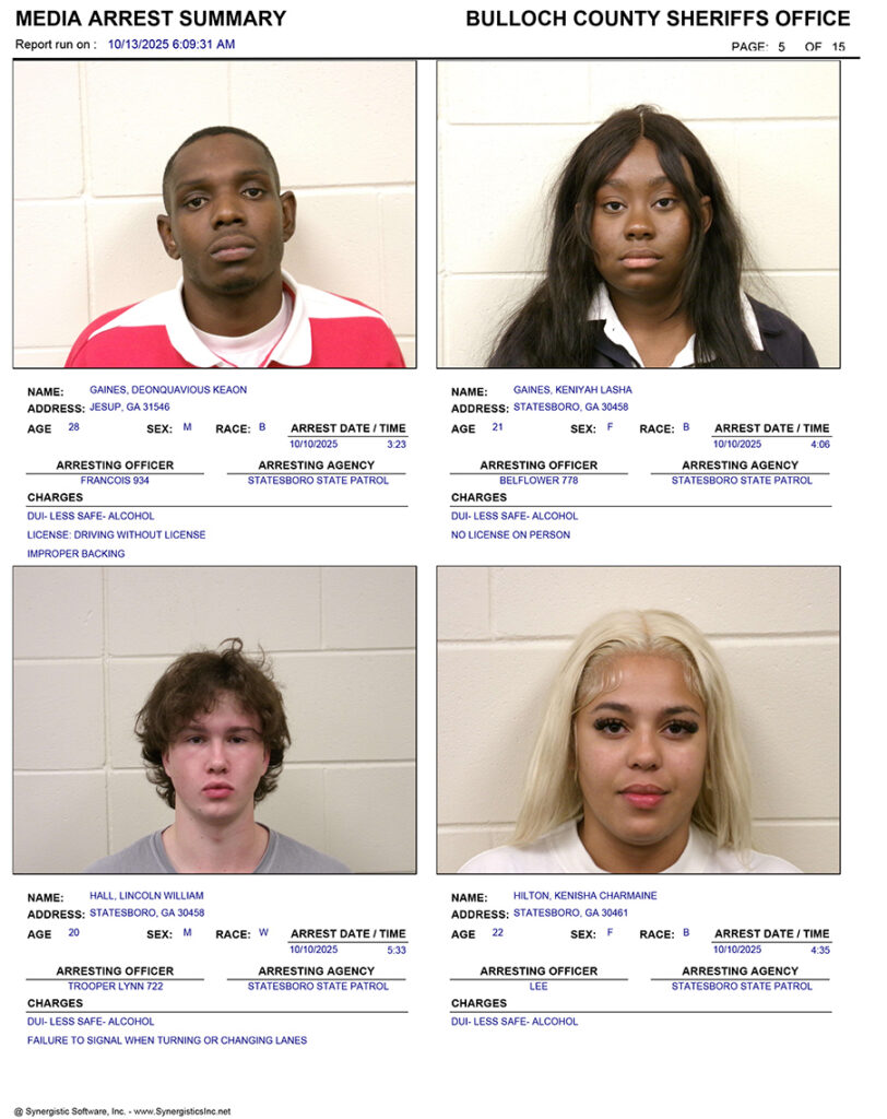 These records are matters of public information provided by the Bulloch County Sheriff’s Office. Booking reports are details of arrests only. All persons below are considered to be innocent unless proven otherwise in a court of law.