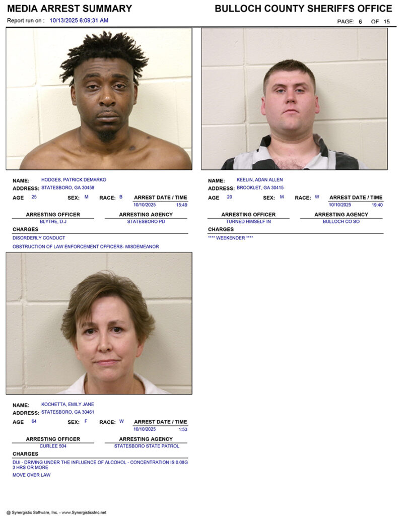 These records are matters of public information provided by the Bulloch County Sheriff’s Office. Booking reports are details of arrests only. All persons below are considered to be innocent unless proven otherwise in a court of law.