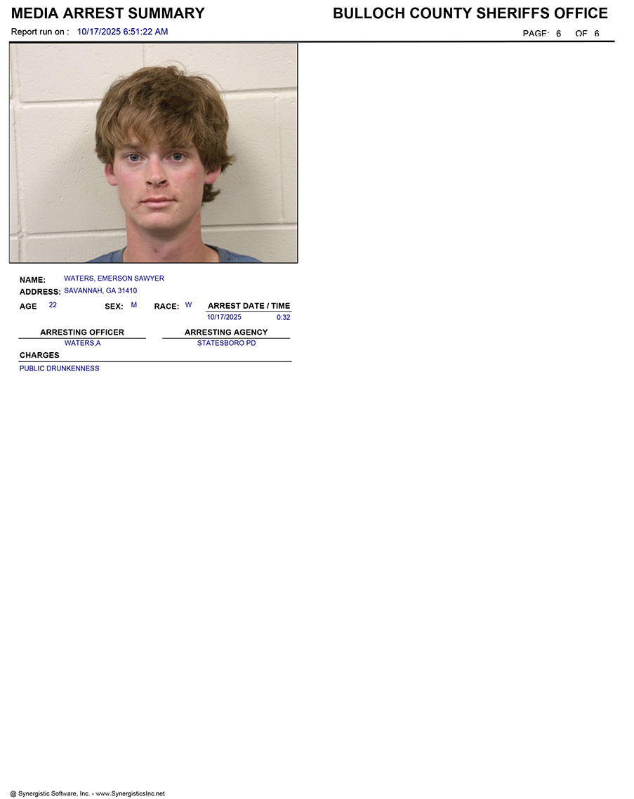 These records are matters of public information provided by the Bulloch County Sheriff’s Office. Booking reports are details of arrests only. All persons below are considered to be innocent unless proven otherwise in a court of law.