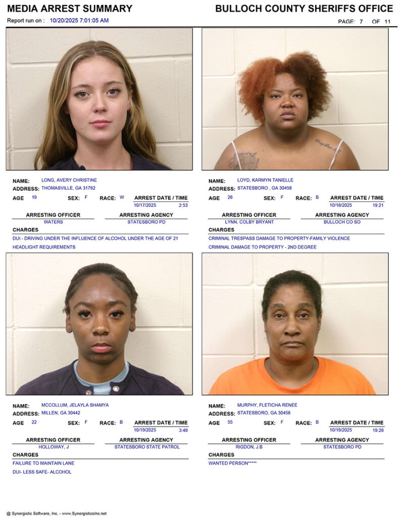 These records are matters of public information provided by the Bulloch County Sheriff’s Office. Booking reports are details of arrests only. All persons below are considered to be innocent unless proven otherwise in a court of law.