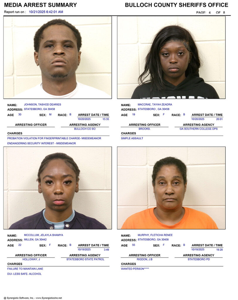 These records are matters of public information provided by the Bulloch County Sheriff’s Office. Booking reports are details of arrests only. All persons below are considered to be innocent unless proven otherwise in a court of law.