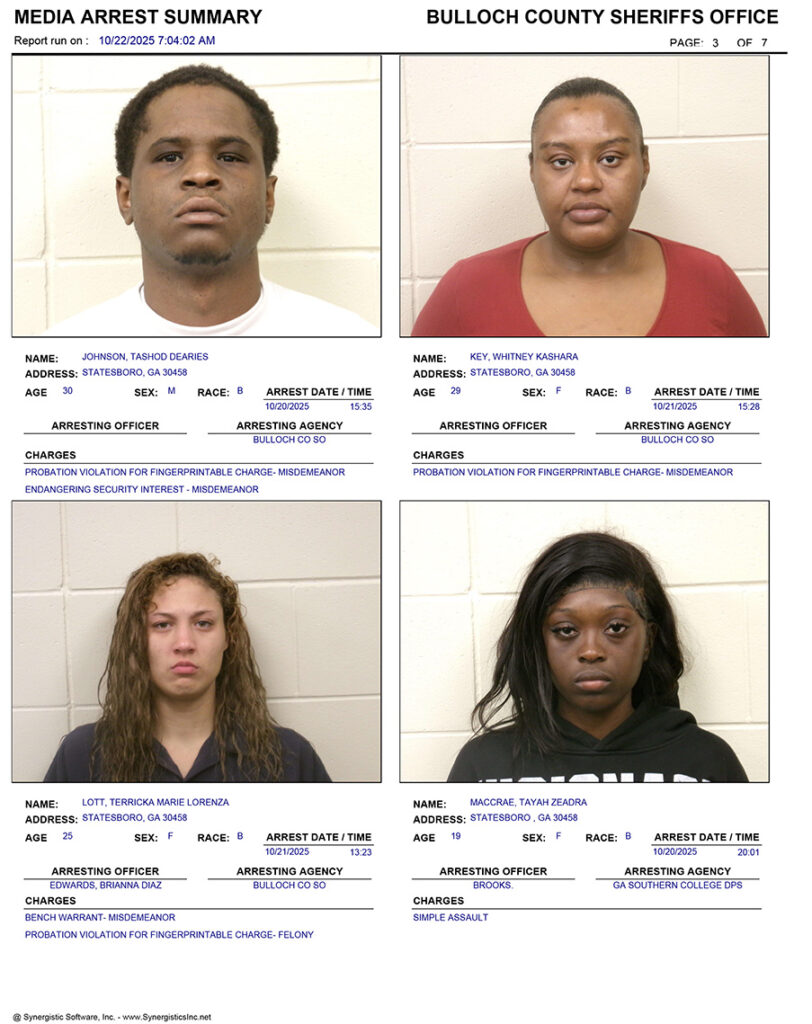 These records are matters of public information provided by the Bulloch County Sheriff’s Office. Booking reports are details of arrests only. All persons below are considered to be innocent unless proven otherwise in a court of law.