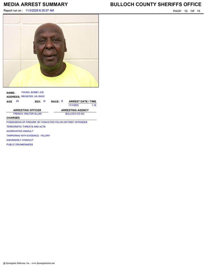 These records are matters of public information provided by the Bulloch County Sheriff’s Office. Booking reports are details of arrests only. All persons below are considered to be innocent unless proven otherwise in a court of law.
