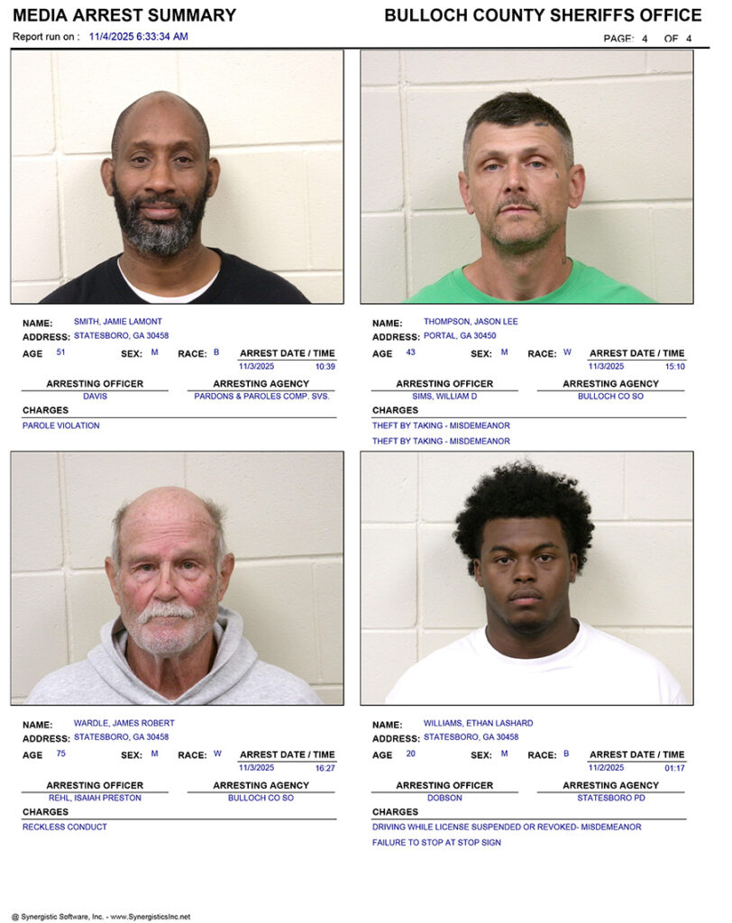 These records are matters of public information provided by the Bulloch County Sheriff’s Office. Booking reports are details of arrests only. All persons below are considered to be innocent unless proven otherwise in a court of law.