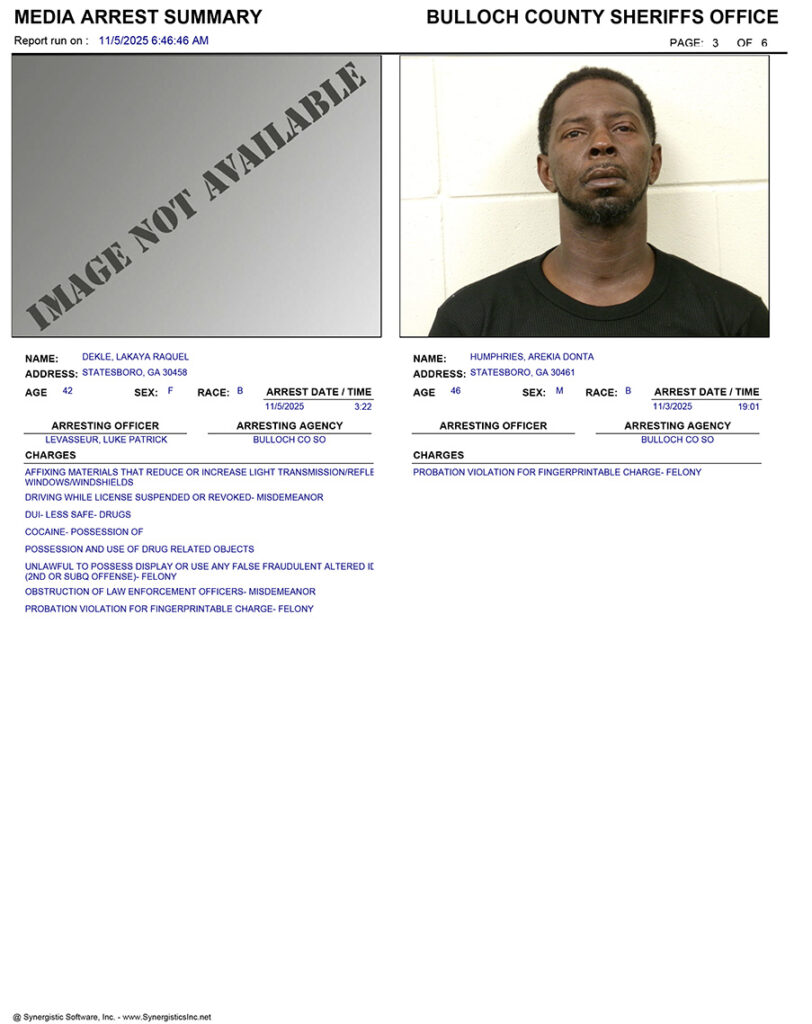 These records are matters of public information provided by the Bulloch County Sheriff’s Office. Booking reports are details of arrests only. All persons below are considered to be innocent unless proven otherwise in a court of law.