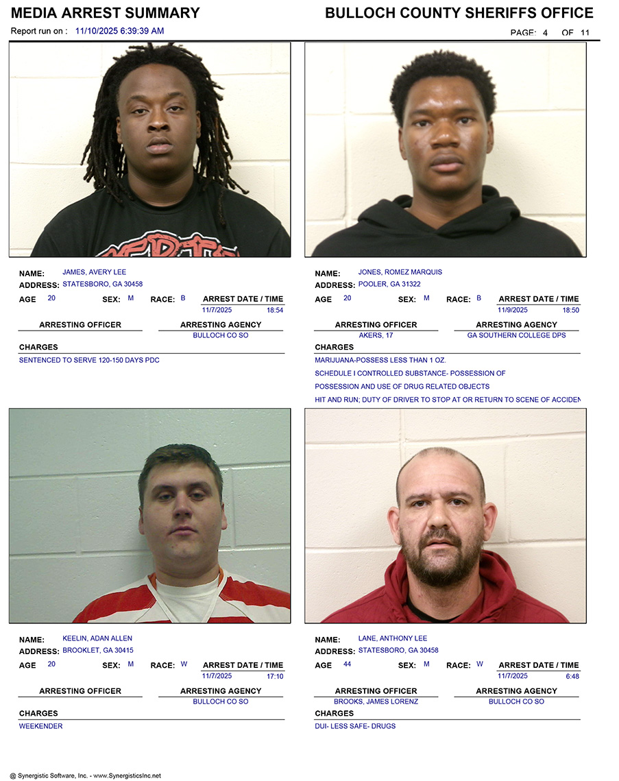 These records are matters of public information provided by the Bulloch County Sheriff’s Office. Booking reports are details of arrests only. All persons below are considered to be innocent unless proven otherwise in a court of law.
