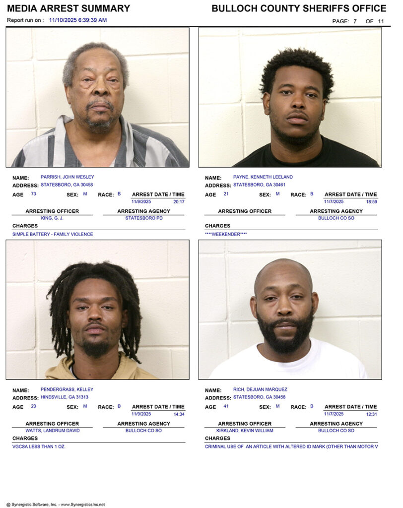 These records are matters of public information provided by the Bulloch County Sheriff’s Office. Booking reports are details of arrests only. All persons below are considered to be innocent unless proven otherwise in a court of law.