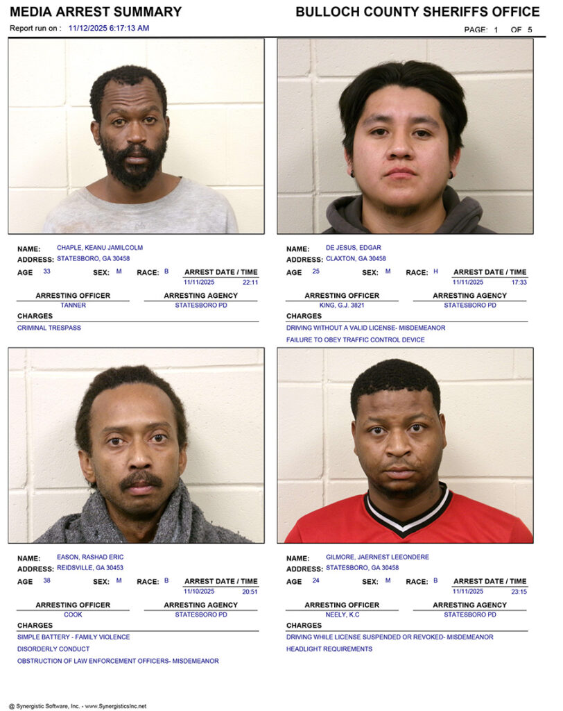 These records are matters of public information provided by the Bulloch County Sheriff’s Office. Booking reports are details of arrests only. All persons below are considered to be innocent unless proven otherwise in a court of law.