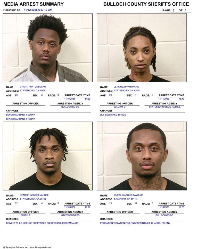 These records are matters of public information provided by the Bulloch County Sheriff’s Office. Booking reports are details of arrests only. All persons below are considered to be innocent unless proven otherwise in a court of law.