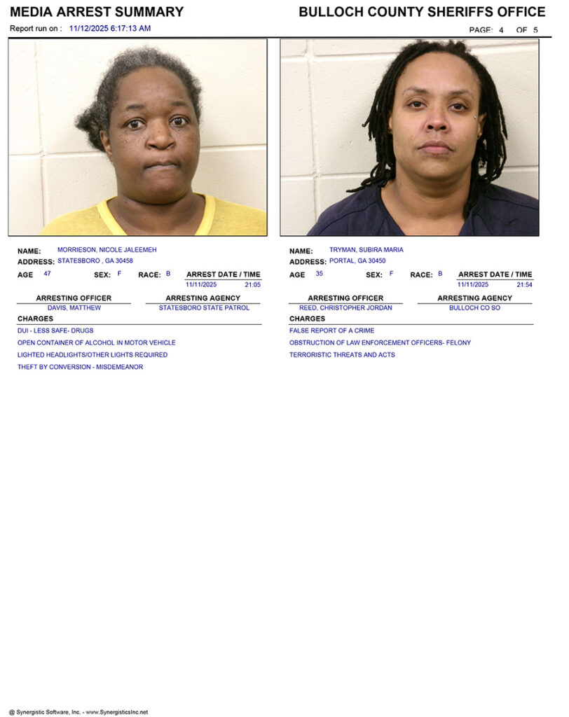 These records are matters of public information provided by the Bulloch County Sheriff’s Office. Booking reports are details of arrests only. All persons below are considered to be innocent unless proven otherwise in a court of law.