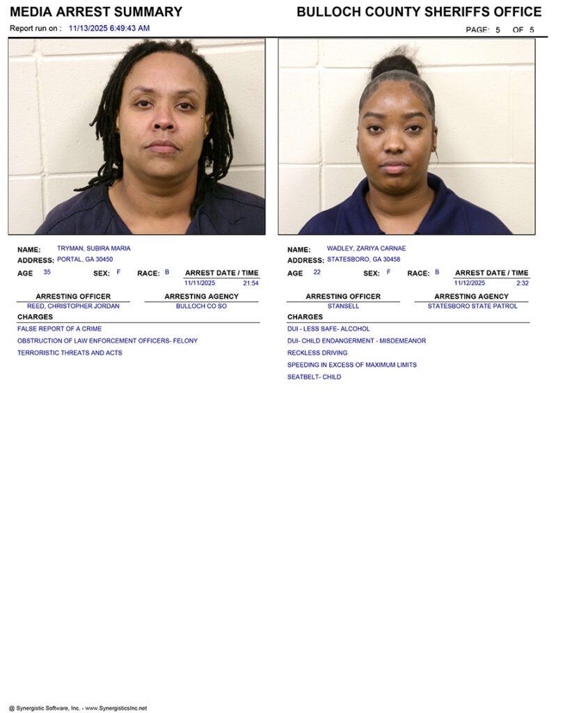 These records are matters of public information provided by the Bulloch County Sheriff’s Office. Booking reports are details of arrests only. All persons below are considered to be innocent unless proven otherwise in a court of law.