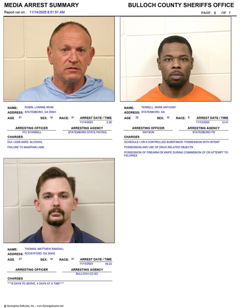 These records are matters of public information provided by the Bulloch County Sheriff’s Office. Booking reports are details of arrests only. All persons below are considered to be innocent unless proven otherwise in a court of law.