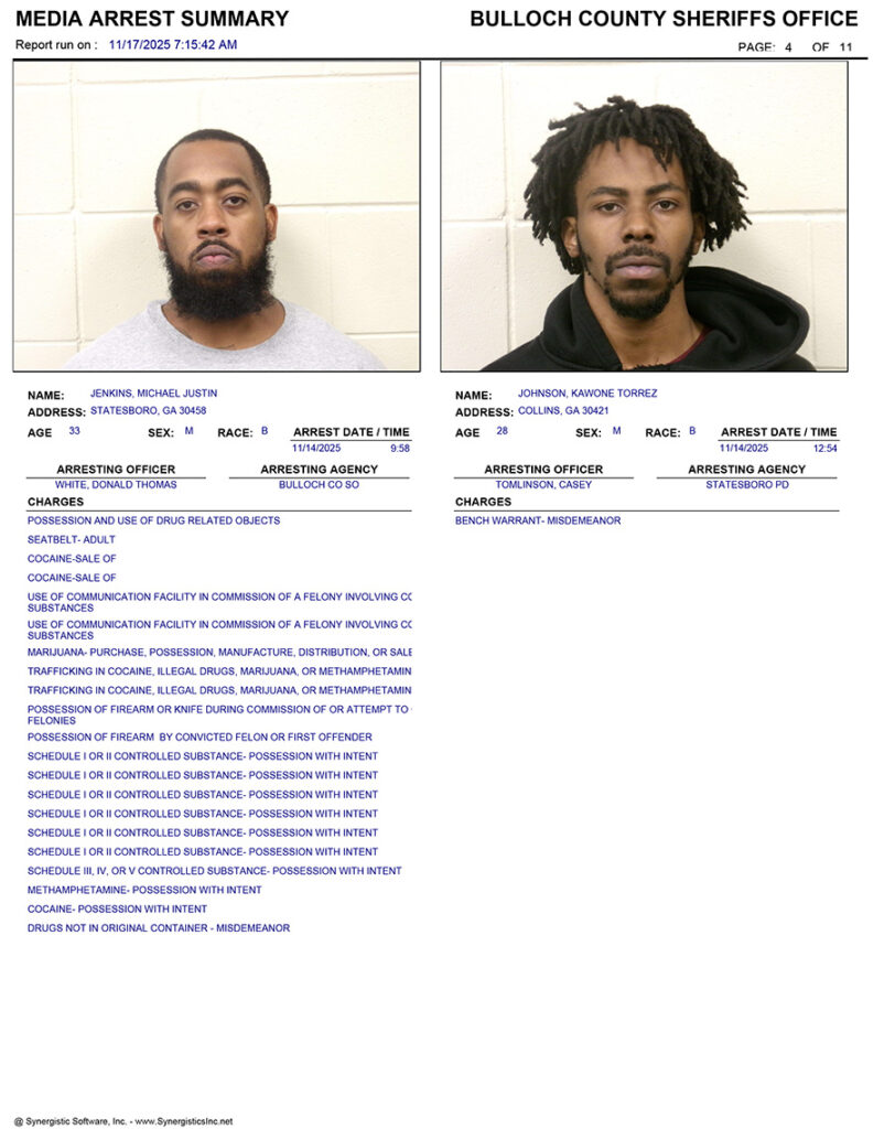 These records are matters of public information provided by the Bulloch County Sheriff’s Office. Booking reports are details of arrests only. All persons below are considered to be innocent unless proven otherwise in a court of law.