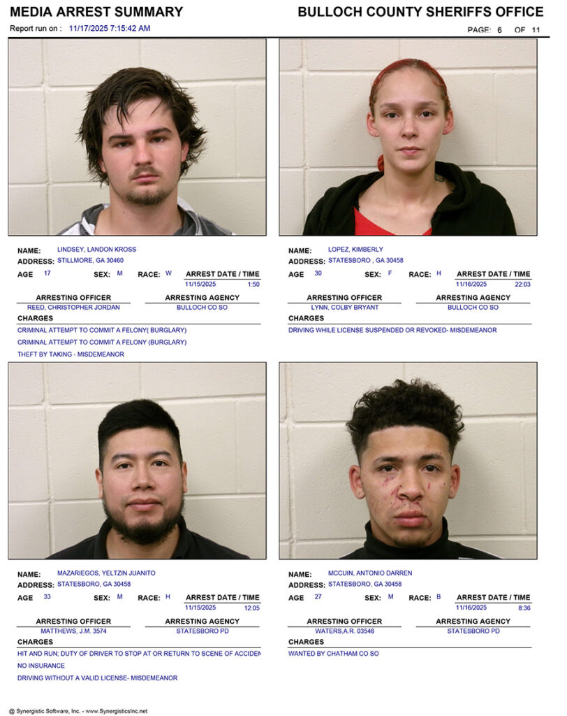 These records are matters of public information provided by the Bulloch County Sheriff’s Office. Booking reports are details of arrests only. All persons below are considered to be innocent unless proven otherwise in a court of law.
