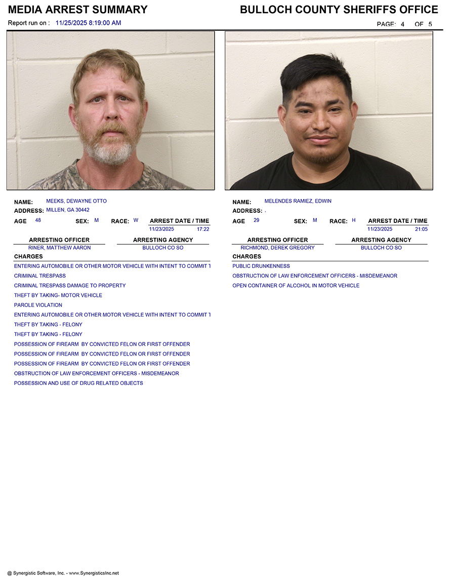 These records are matters of public information provided by the Bulloch County Sheriff’s Office. Booking reports are details of arrests only. All persons below are considered to be innocent unless proven otherwise in a court of law.