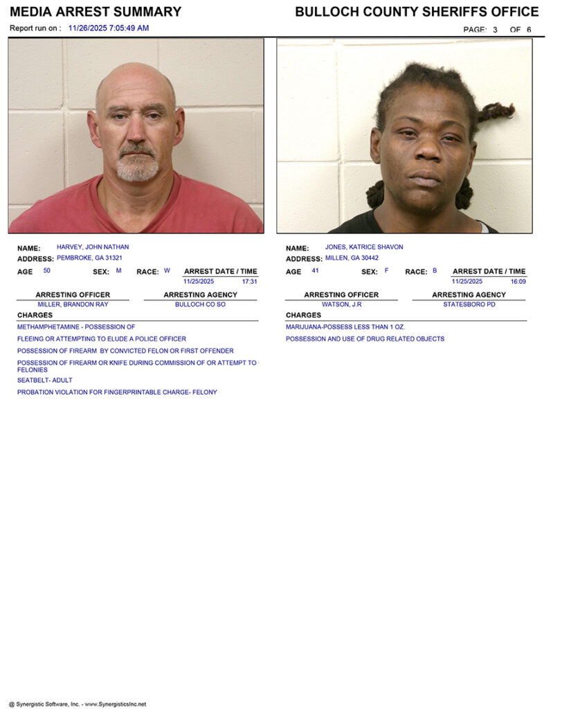 These records are matters of public information provided by the Bulloch County Sheriff’s Office. Booking reports are details of arrests only. All persons below are considered to be innocent unless proven otherwise in a court of law.