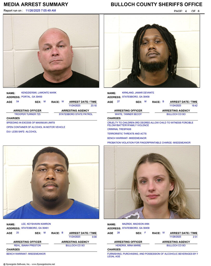 These records are matters of public information provided by the Bulloch County Sheriff’s Office. Booking reports are details of arrests only. All persons below are considered to be innocent unless proven otherwise in a court of law.