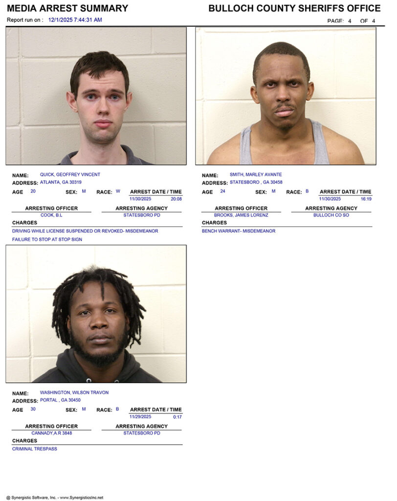 These records are matters of public information provided by the Bulloch County Sheriff’s Office. Booking reports are details of arrests only. All persons below are considered to be innocent unless proven otherwise in a court of law.