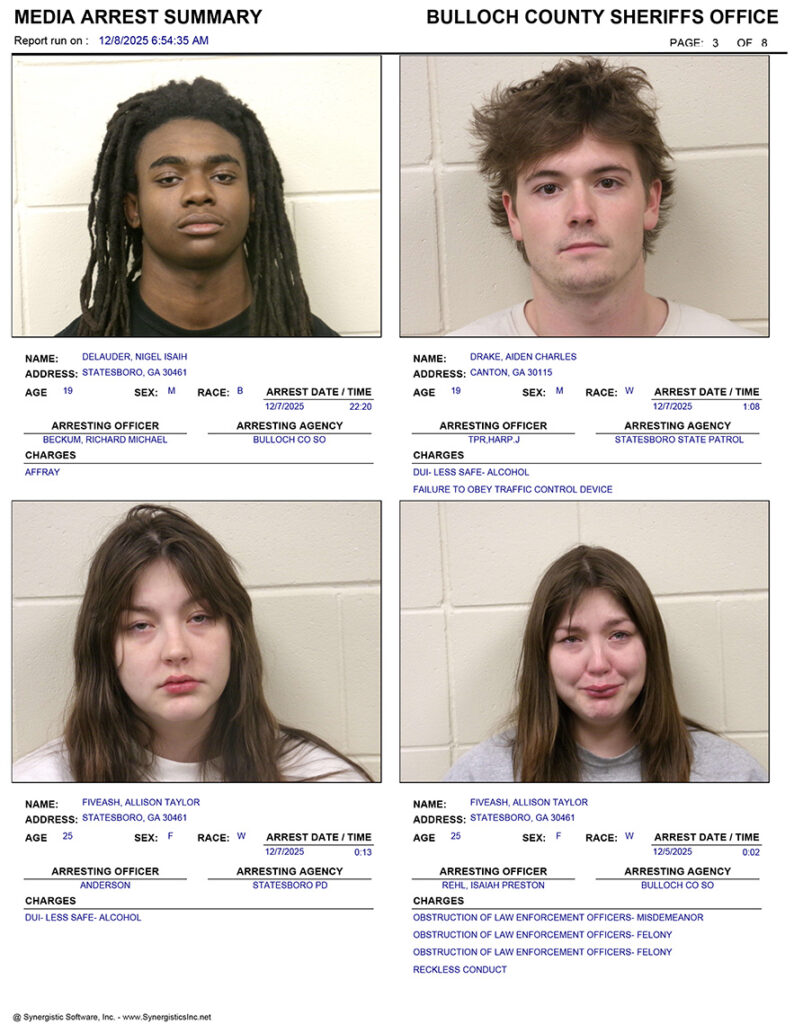 These records are matters of public information provided by the Bulloch County Sheriff’s Office. Booking reports are details of arrests only. All persons below are considered to be innocent unless proven otherwise in a court of law.