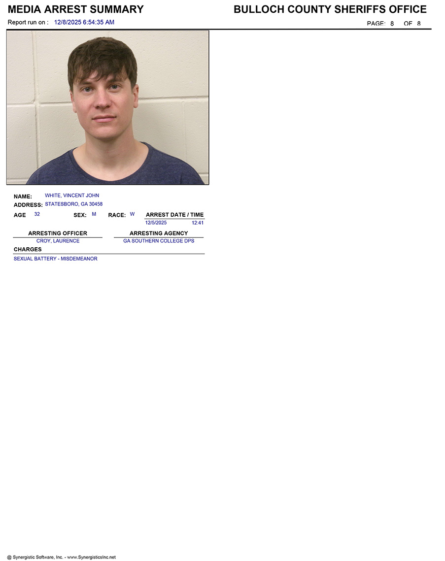 These records are matters of public information provided by the Bulloch County Sheriff’s Office. Booking reports are details of arrests only. All persons below are considered to be innocent unless proven otherwise in a court of law.