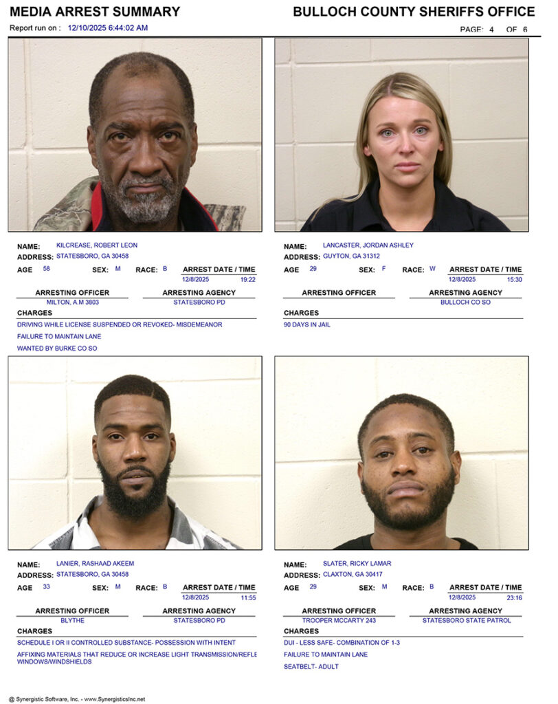 These records are matters of public information provided by the Bulloch County Sheriff’s Office. Booking reports are details of arrests only. All persons below are considered to be innocent unless proven otherwise in a court of law.