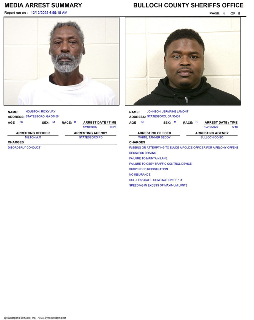 These records are matters of public information provided by the Bulloch County Sheriff’s Office. Booking reports are details of arrests only. All persons below are considered to be innocent unless proven otherwise in a court of law.
