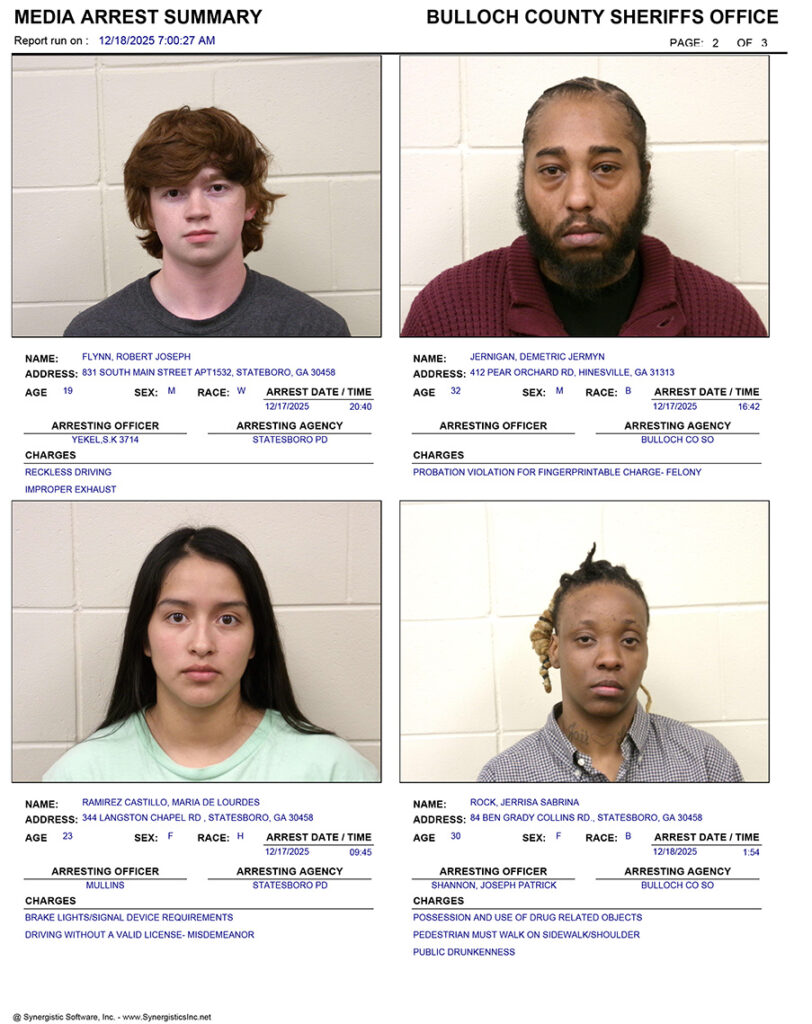 These records are matters of public information provided by the Bulloch County Sheriff’s Office. Booking reports are details of arrests only. All persons below are considered to be innocent unless proven otherwise in a court of law.